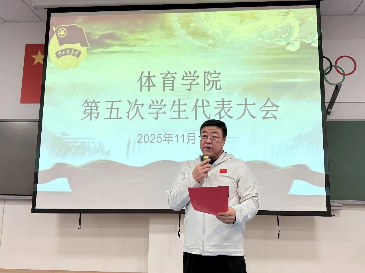 会议伊始,体育学院党总支书记、院长张秋波为本次大会致开幕词,他充分肯定了上一届学生会在思想引领、学风建设、文体活动、服务同学等方面取得的成绩,强调学生会作为连接学院与学生的桥梁纽带,要始终坚持以学生为中心,聚焦学生成长需求,在服务学院发展大局中展现体育学子的责任与担当。他希望全体学生代表珍惜荣誉、认真履职,以此次大会为契机,凝聚共识、锐意进取,共同推动学院学生工作再上新台阶。